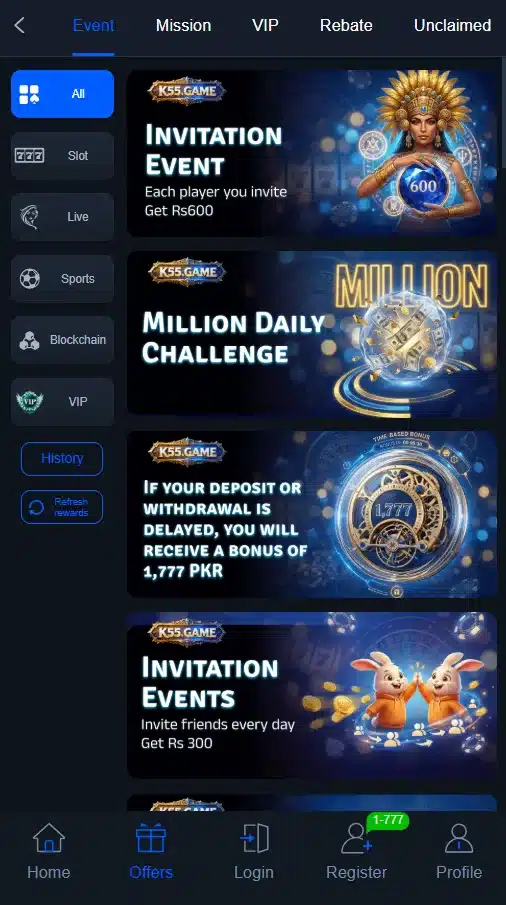 The interface of K55 Game is built for simplicity. Users can easily navigate between games, manage their accounts, and access financial features without complexity.